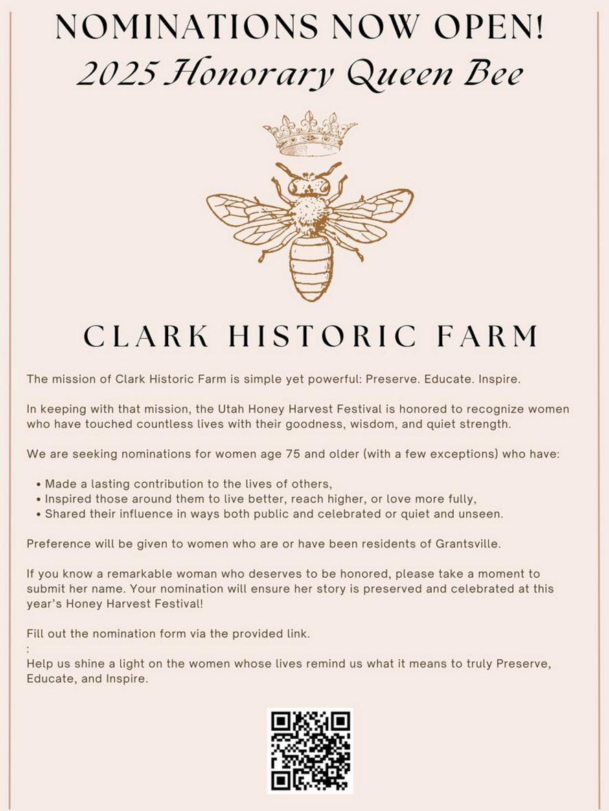Bring a small (about 8 oz.) jar of your honey to the Clark Farm Sweet Cornbread booth, just inside the front entrance of the Honey Harvest Festival any time on Friday, Oct. 10th, 2025 or before noon on Saturday, Oct. 11th. Visitors will taste it and vote on it, as well as a panel of judges. Winner announced at 3:15 p.m. on Saturday. Prizes will be given!